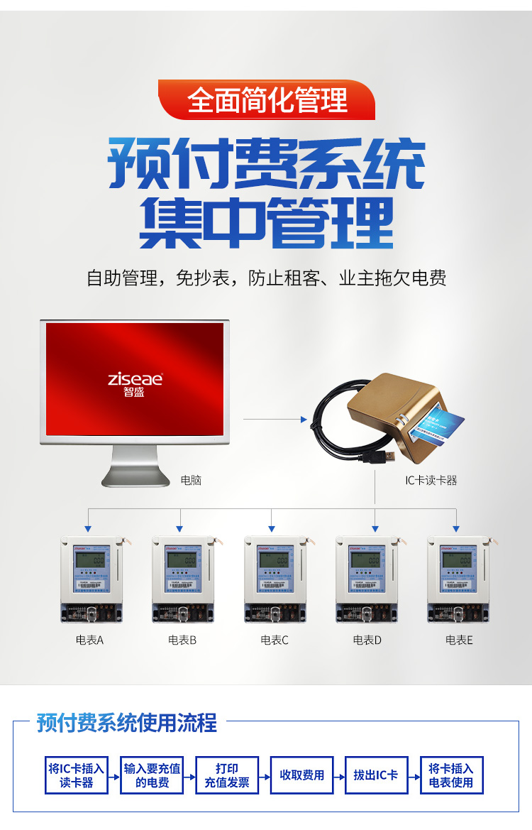 (6)預(yù)付費(fèi)電表的使用流程:1將IC卡插入讀卡器 2輸入要充值的金額 3電影充值發(fā)票 4收取費(fèi)用 5拔出IC卡 6將IC卡插入電表使用,具體操作如下。