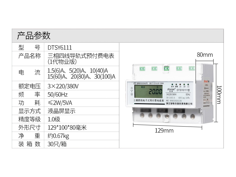 DTSY6111三相電子式導軌預付費電能表(下稱電表)采用微電子技術計量電能,符合GB/T17215.321-2008和GB/T18460.3- 2001標準的電表,采用全屏蔽,全密封結構,用先進的單片機處理系統進行數據的采集,處理和保存,具有良好的抗電磁干擾,低自耗節電,精度高不需校表,防竊電,高過載,長壽命、體積小、外形美觀、安裝方便等特點。